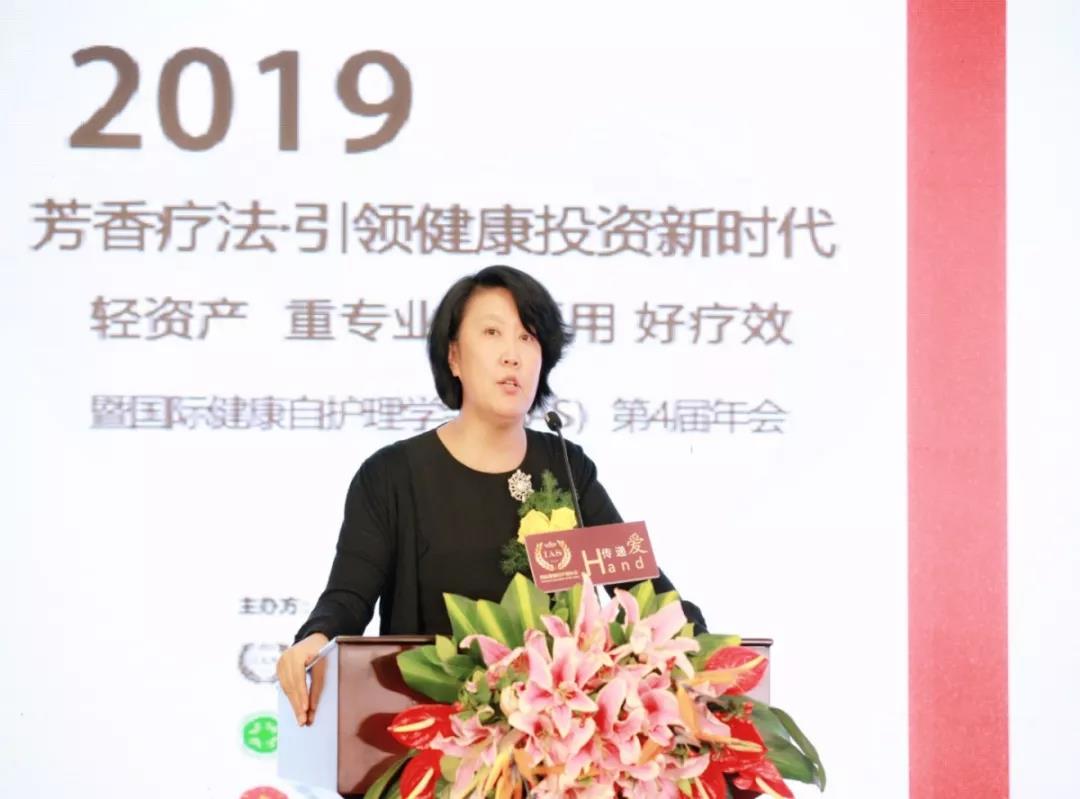 尤红致辞时肯定了芳香疗法,她认为芳香疗法历史悠久,应用广泛,促进健康,发展前景看好,她总结说芳香促健康,健康要芳香。