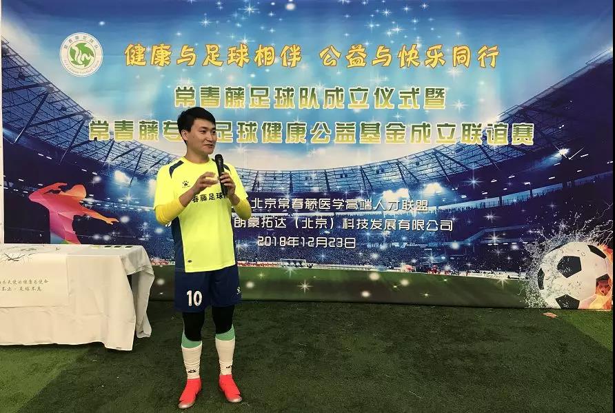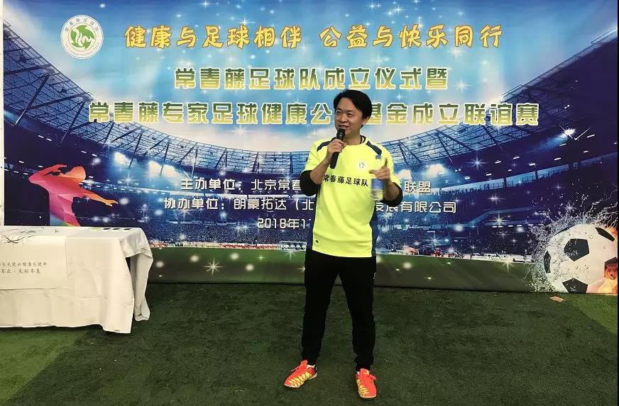 ↑常春藤联盟副秘书长、北京积水潭医院手外科副主任医师李玉成在成立仪式上热情致辞。李玉成代表常春藤联盟对足球队的成立表示热烈祝贺,希望大家积极参于各类健身运动,借健身及比赛增强联盟凝聚力,展现联盟专家的精神风貌。