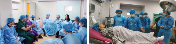 在培训授课间隙,曲元、赫英东、包菊、刘军等来到医院产房就分娩镇痛相关问题以“面对面”答疑形式与当地医护人员进行了交流,取得了良好效果。