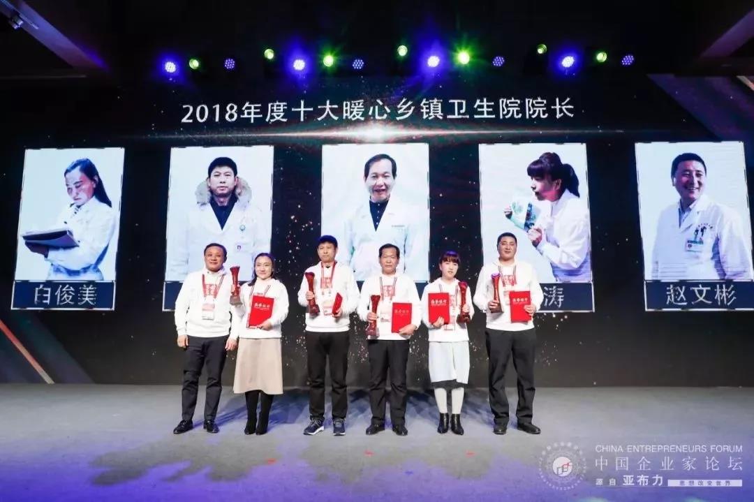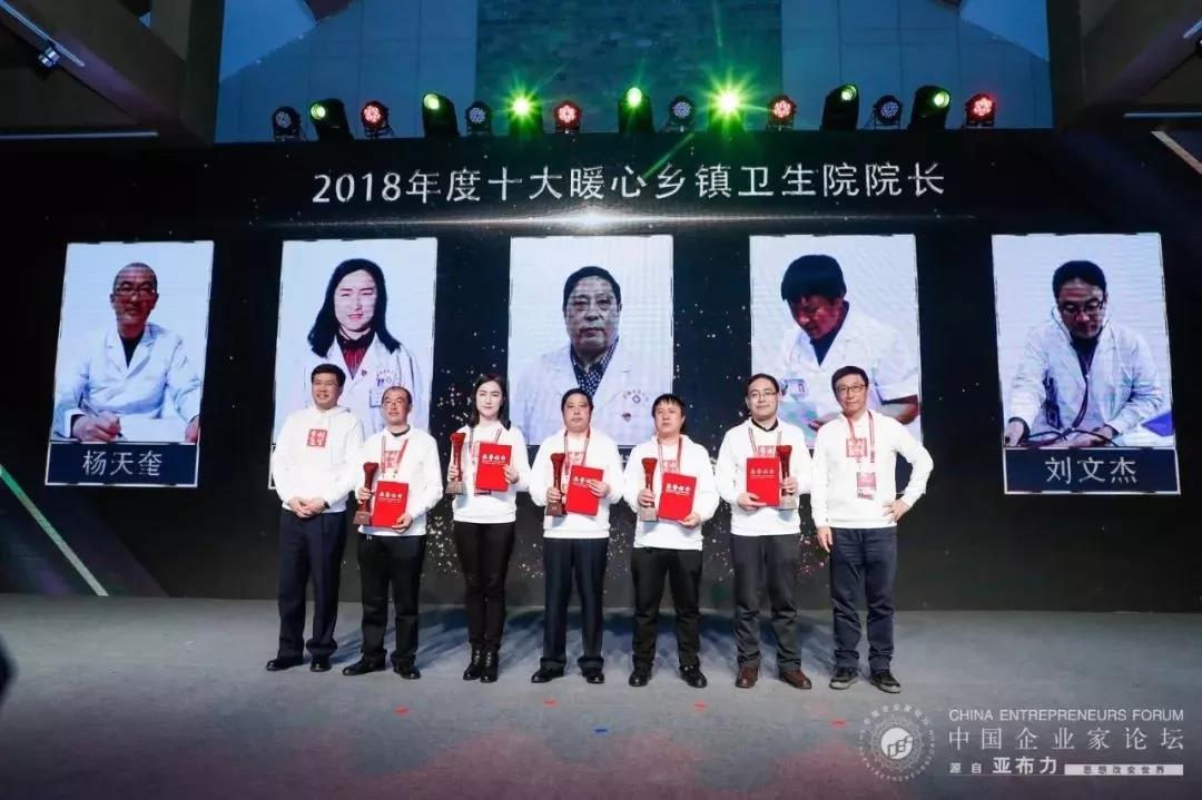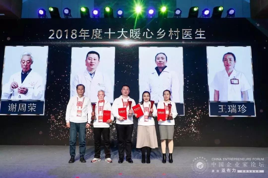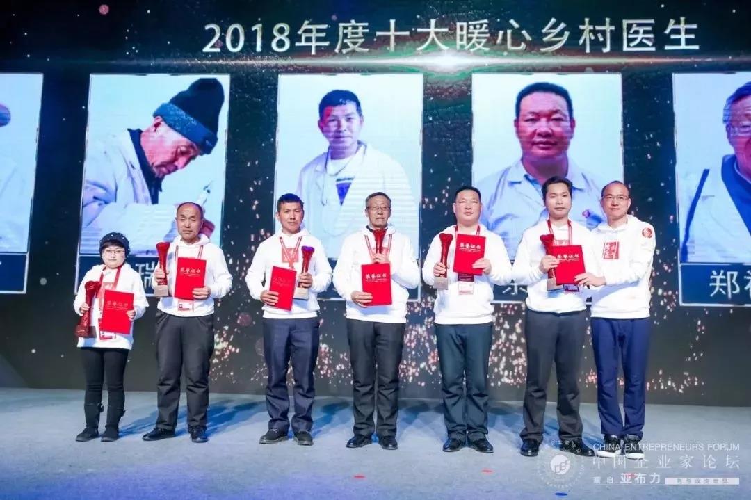 2019年2月18日晚,“2018十大暖心乡村医生及乡镇卫生院院长”在黑龙江亚布力中国企业家论坛举行期间发布。来自中西部地区四川、山西、甘肃、云南等地的10位乡村医生和10位乡镇卫生院院长获得殊荣。发布仪式中,北京常春藤医学高端人才联盟主席吴永波和复星国际董事长郭广昌,亚布力中国企业家论坛理事长、泰康保险集团股份有限公司董事长兼CEO陈东升等嘉宾共同启动了“医路有你——乡村医生守护联盟”,希望发动更多机构、企业参与乡村医生健康扶贫行动,汇聚各界力量,为乡村医疗问题找到可持续解决方案。