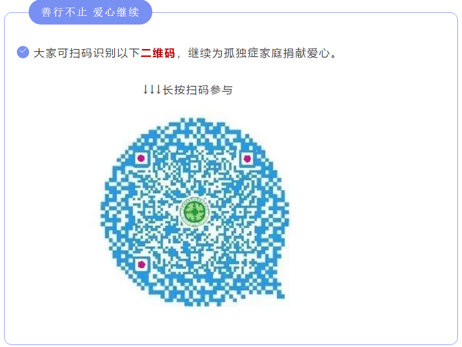 大家可扫码识别以下二维码,继续为孤独症家庭捐献爱心。
