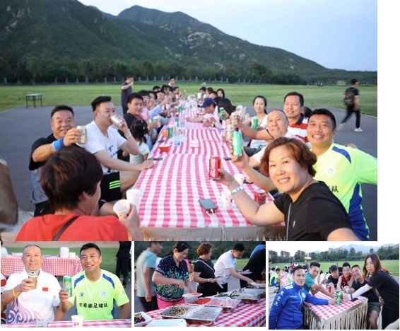 一场酣畅淋漓的马拉松足球赛,紧张、针对变成友谊、欢笑,双方的老中青队员各色合影,像一家人一样开怀畅饮~
