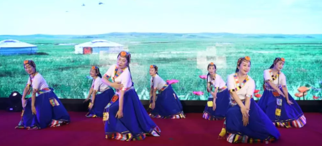 在活动现场,歌曲表演精彩纷呈。北大医院依舞缘表演的舞蹈《心上的罗加》