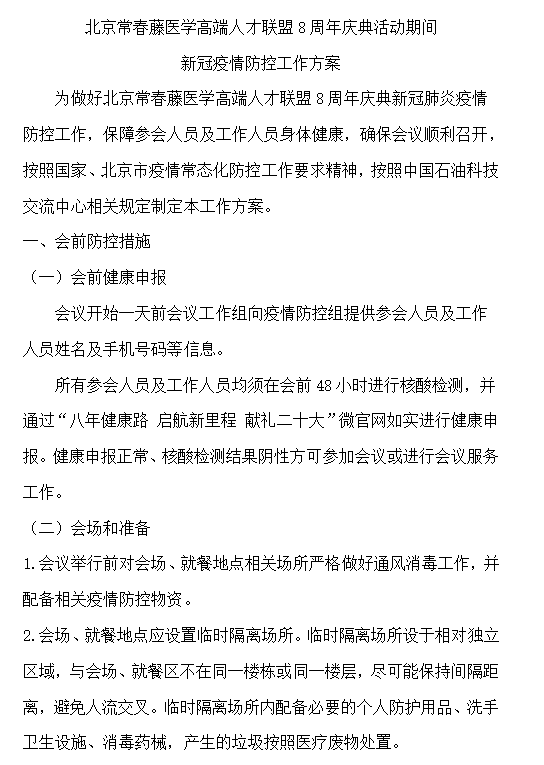常春藤联盟第三届第二次会员大会和周年庆典活动的疫情防控工作方案公示