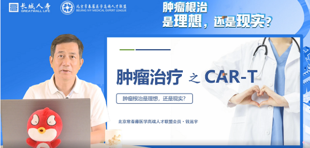 8月31日,北京常春藤医学高端人才联盟为会员单位长城人寿举办了新一期健康大讲堂活动,常春藤联盟专家会员、解放军总医院第一医学中心钱远宇主任为大家开展了题为《肿瘤治疗之CAR-T》的健康知识讲座。本次讲座通过线上形式开展。