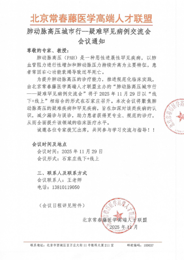 肺动脉高压城市行--疑难罕见病例交流会会议通知