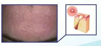 毛囊里皮脂和一些角化性物质的聚集形成闭合性粉刺,凸起于皮肤表面,摸着粗糙有颗粒感,部分能挤出白色的内容物,一旦有炎症感染会演变成炎性损害。↓↓↓