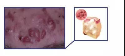 囊肿:位置更深,真皮或皮下由脓液和血液形成的混合物。↓↓↓