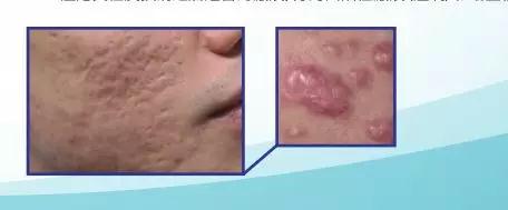 痤疮炎性皮损消退后遗留的瘢痕,分为凹陷性瘢痕(痘坑)和增生性瘢痕。↓↓↓